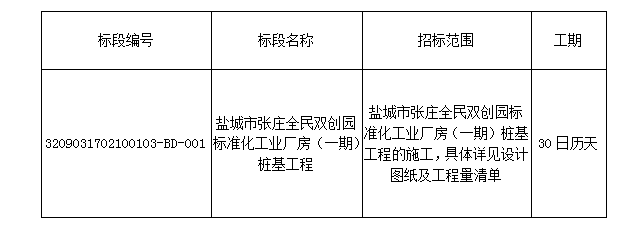 本招標項目鹽城市張莊全民雙創(chuàng)園標準化工業(yè)廠房已由鹽城市鹽都區(qū)發(fā)展和改革委員會以關(guān)于鹽城市張莊全民雙創(chuàng)園建設(shè)投資有限公司建設(shè)張莊全民雙創(chuàng)園標準化工業(yè)廠房項目備案的通知-都發(fā)改審(2016)281號批準建設(shè)。招標人為鹽城市張莊全民雙創(chuàng)園建設(shè)投資有限公司,工程所需資金來源自籌。項目已具備招標條件,現(xiàn)對該項目的鹽城市張莊全民雙創(chuàng)園標準化工業(yè)廠房(一期)樁基工程進行公開招標。本次招標對投標報名人的資格審查,采用資格后審方法選擇合格的投標申請人參加投標。