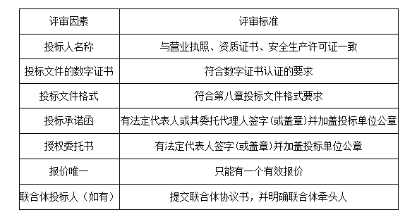 對招標文件要求的工期、質(zhì)量、投標保證金、履約擔保、投標有效期、暫定價、不可競爭費用等實質(zhì)性要求的響應(yīng)性進行評審。