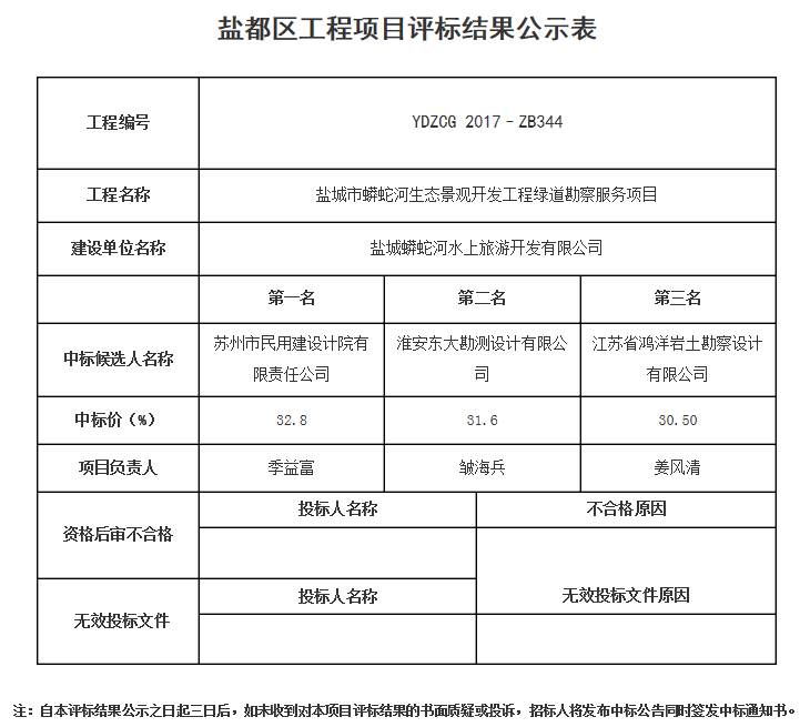 鹽城市蟒蛇河生態(tài)景觀開(kāi)發(fā)工程綠道勘察服務(wù)項(xiàng)目中標(biāo)結(jié)果公示