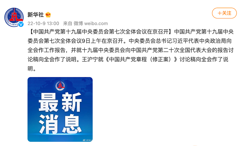 中國共產(chǎn)黨第十九屆中央委員會第七次全體會議在京召開