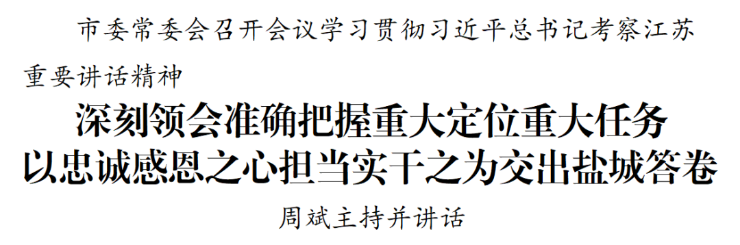會議指出,要以學習貫徹習近平總書記重要講話精神為強大動力,“以學促干”緊抓當前、抓好當前,推動總書記重要講話精神在鹽城落地生根。